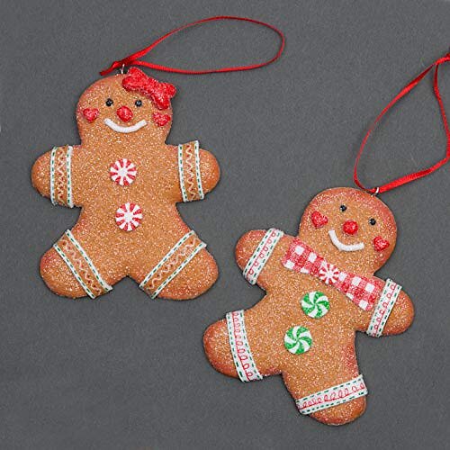 SHATCHI Gingerbread Couple Christmas Ornament 10cm 2-pack