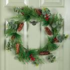 Samuel Alexander P058047 Hanging Christmas Eucalyptus Wreath with Red Berries and Pinecones 50cm
