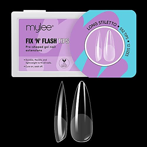 Mylee Fix & Flash Soft Gel Tips Long Stiletto Full Cover Soft Gel Nail Tips 552 pcs