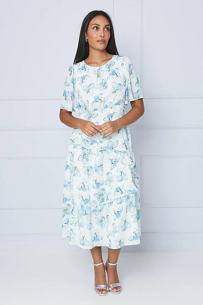 Wallis Floral Satin Ruffle Midi Dress