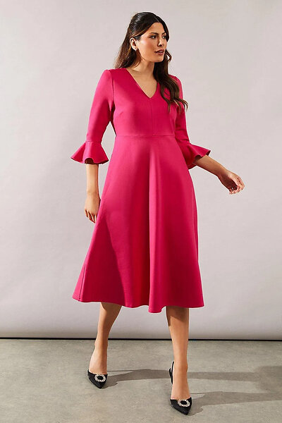 Wallis Flute Sleeve Ponte Midi Dress