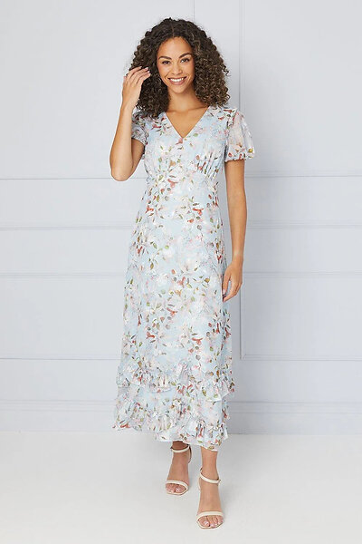 Wallis Floral Satin Ruffle Hem Midaxi Dress