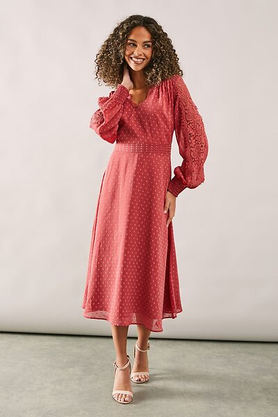 Wallis Pleat Detail Lace Midi Dress