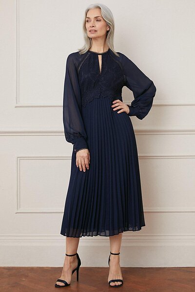 Wallis Lace Insert Pleated Midi Dress