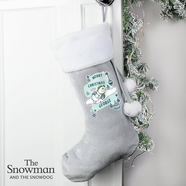 Personalised Message Snowman And Snowdog Christmas Stocking