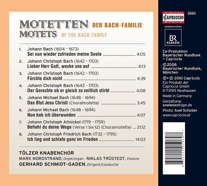 SchmidtGaden, Mark Nordstrand, Niklas Trustedt, Tölzer Knabenchor, Johann Bach, Johann Christoph Altnickol Motets Of The Bach Family CD