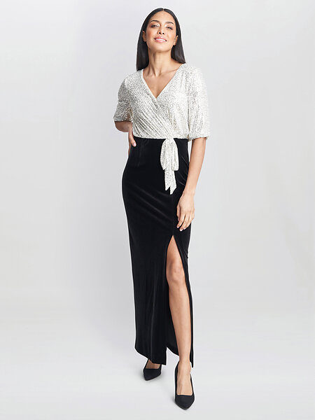 Gina Bacconi Matilyn Sequin Dress With Velvet Skirt Maxi Dress