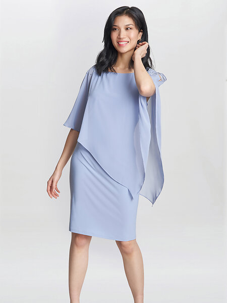 Gina Bacconi Zenna Beaded Shoulder Chiffon Dress