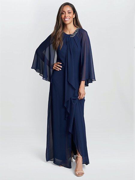Gina Bacconi Polly Maxi Halter Neck With Embellishment And Capelet Sleeves Dress