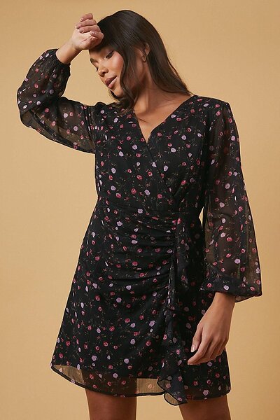 Oasis Petite Occasion Floral Ruffle Wrap Mini Dress