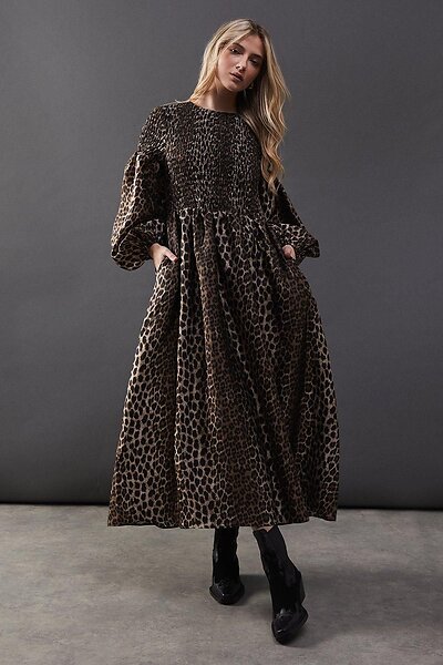Warehouse Textured Organza Shirred Midaxi Dress