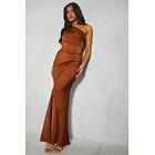MissPap Satin Asymmetric Strap Pleated Waist Low Back Maxi Dress