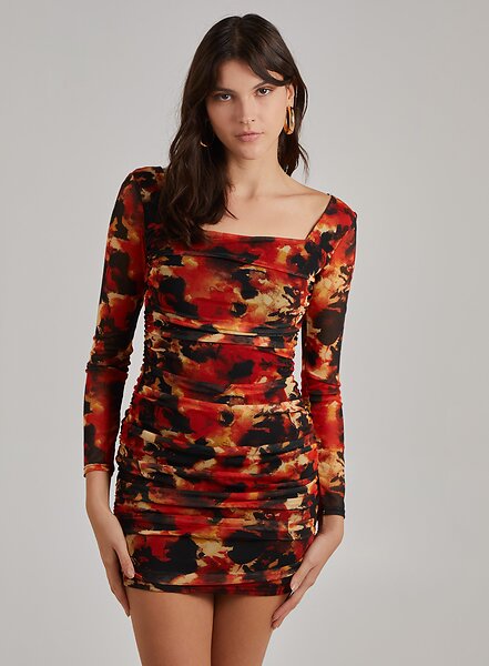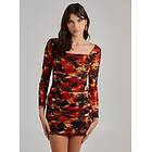 Pink Vanilla Ruched Smudge Print Long Sleeved Dress