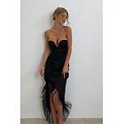 MissPap Premium Satin V Bar Tassle Hem Draped Midi Dress