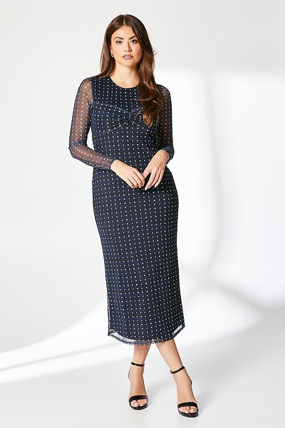 Principles Womens Check Print Twist Detail Mesh Midi Dress