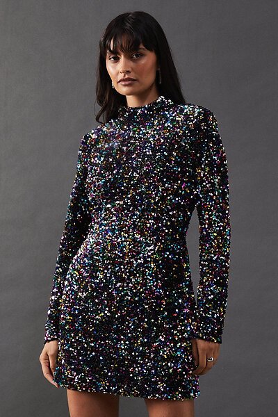 Warehouse Mini Long Sleeve Sequin Embellished Dress