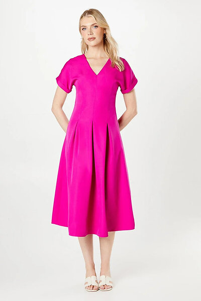 Principles Fit Flare V-Neck Pleated Midi Dress