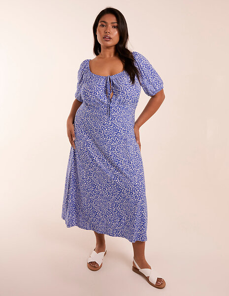 Blue Vanilla Curve Milkmaid Stretch Crepe Midi Dress