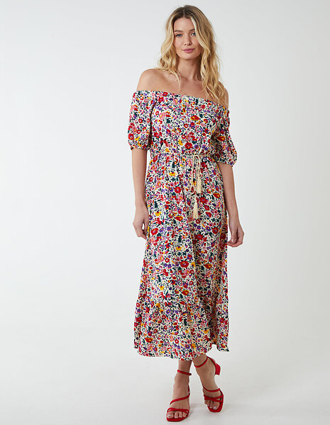 Blue Vanilla Bardot With Frill Hem Midi Dress