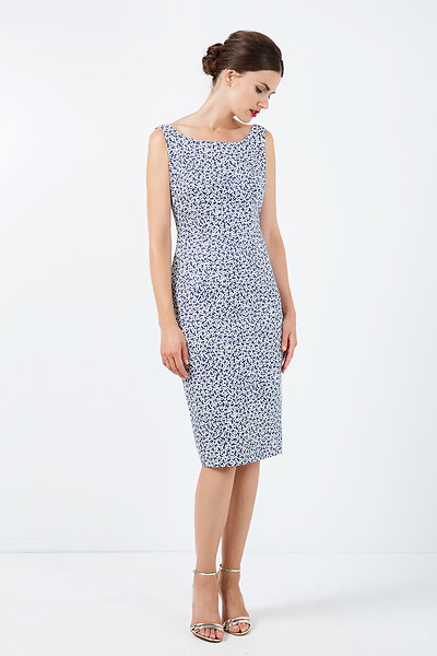 Conquista Sleeveless Floral Straight Dress with Zip Detail Dress
