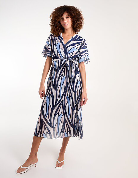 Blue Vanilla Wrap Over Pleat Midi Dress