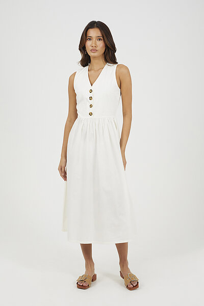 Brave Soul Core Sleeveless Button Down Midi Dress