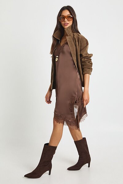 The best price for Boohoo Slip Asymmetric Lace Satin Midi Dress right now is £22.50. PriceSpy compares deals and offers from online and local shops.