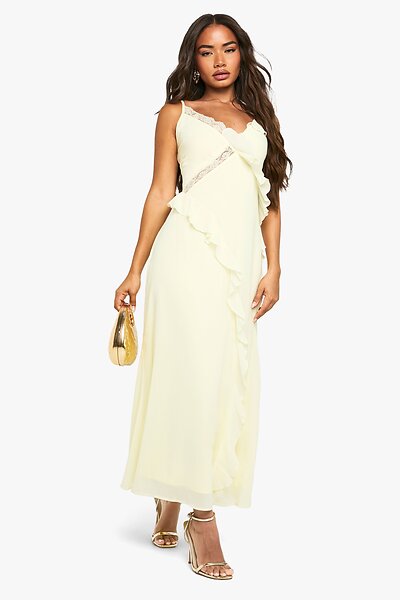 Boohoo Ruffled Chiffon Lace Detail Midaxi Dress