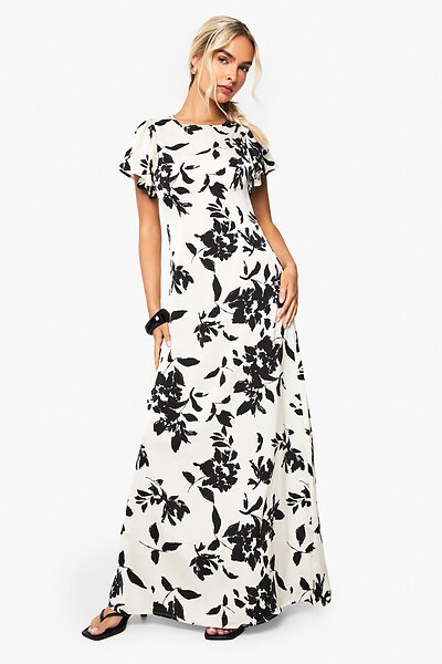 Boohoo Angel Sleeve Lace Hem Slip Maxi Dress
