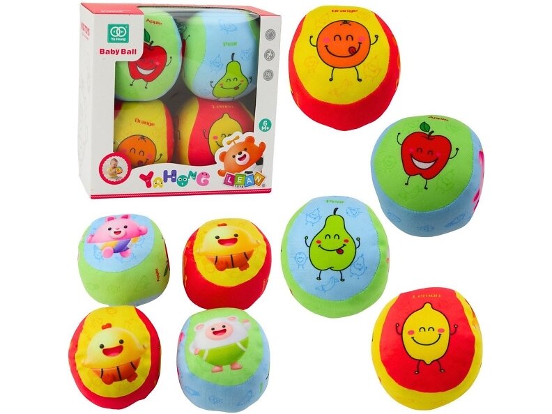 Lean Toys Set of 4 Soft Fruit Pattern Balls