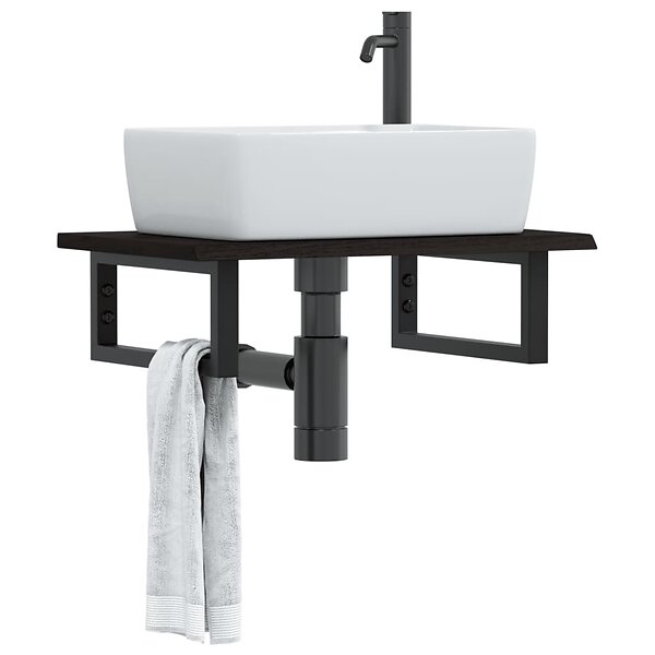vidaXL Basin Shelf Wall Mounted Steel and Solid Wood Oak