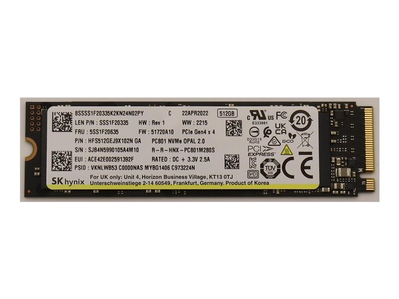 Form factor: M.2 Card, Interface: PCIe Gen4 x4 NVMe, Size: 512 GB