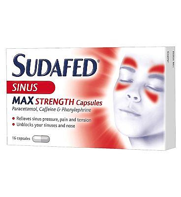 The best price for Sudafed Sinus Max Strength Blocked Nose and Sinus 16 Capsules right now is £3.49. It is among the 10 most popular products in our Cold Medicines category. PriceSpy compares deals and offers from 6 shops, online and local.