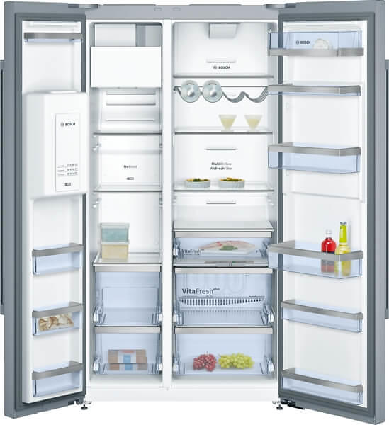 Door Alarm, Water dispenser, Glass shelves, Dynamic cooling (fan), Ice dispenser, Fast freezing, Anti-fingerprint finish, 0°C compartment (ZeroZone/Chef Zone), Built-in LED lighting, No Frost freezer