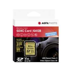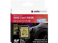 AgfaPhoto High Speed Professional SDXC Class 10 UHS-I U3 V30 100/95MB/s 64GB