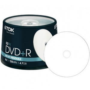 TDK DVD+R 4.7GB 16x 50-pack Cakebox Inkjet