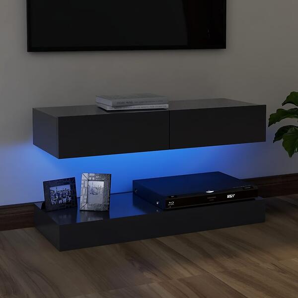 vidaXL TV Cabinet with LED Lights Grey 90x35 cm