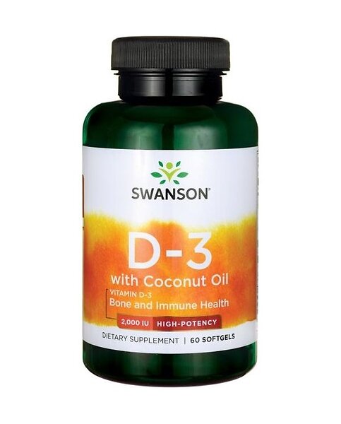 Swanson Vitamin D-3 with Coconut Oil 2000 IU 60 Softgels