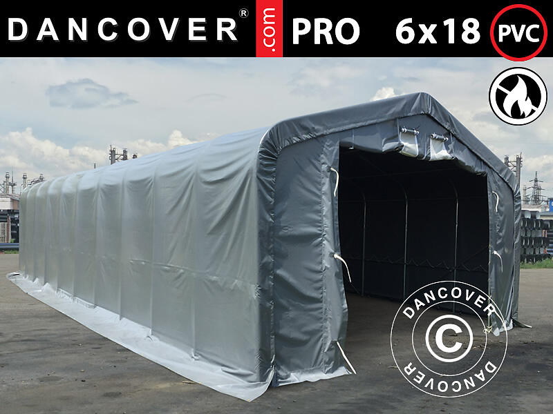 Dancover Lagertält Tälthall PRO 6x18x3.7m PVC med takpanel, Grå