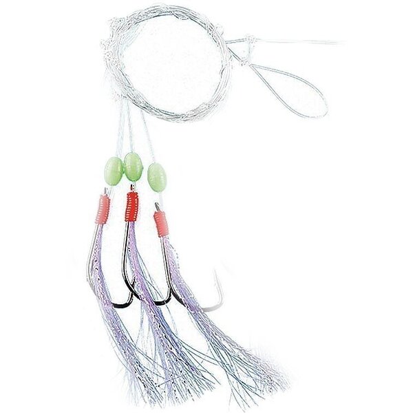 Fladen Vit Fjäderhäckla m. Självlysande Kulor 3 Krokar, Stl 7/0