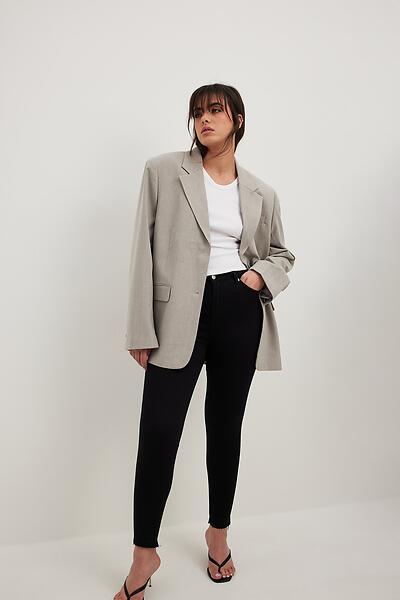 NA-KD Skinny jeans med hög midja och rå fåll (Women's)