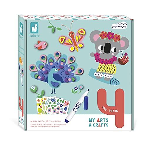 Janod My Arts & Crafts J07747-4 Years Creative Multi-Activity Set 9 Illustrations Children's Craft Kit Learning Fine Motor Skills and Concen