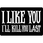 Love Small Tin Sign: I LIKE YOU, I'LL KILL YOU LAST message gothic card fun gift