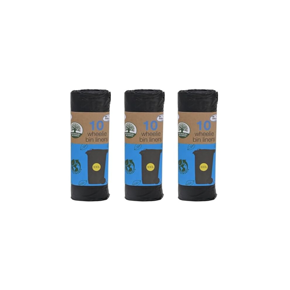 x3 10 pack Super Strong Wheelie Bin Black Bin Liners 10 Pack x3, 300 Litres capacity each bag (Total 30 bags)