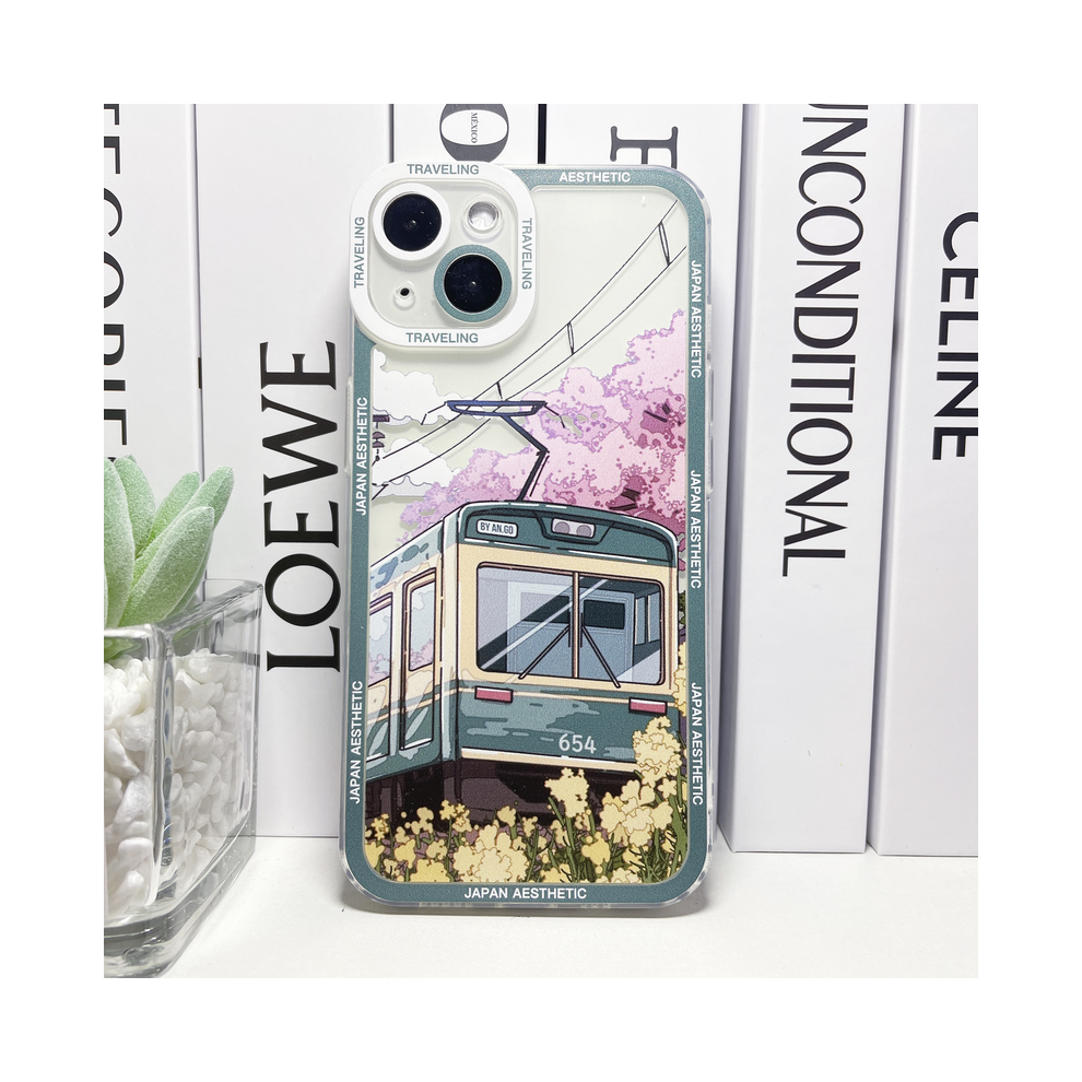 (02, iPhone 13 Pro Max) Japanese Aesthetic Traint Moun Fuji Phone Case For