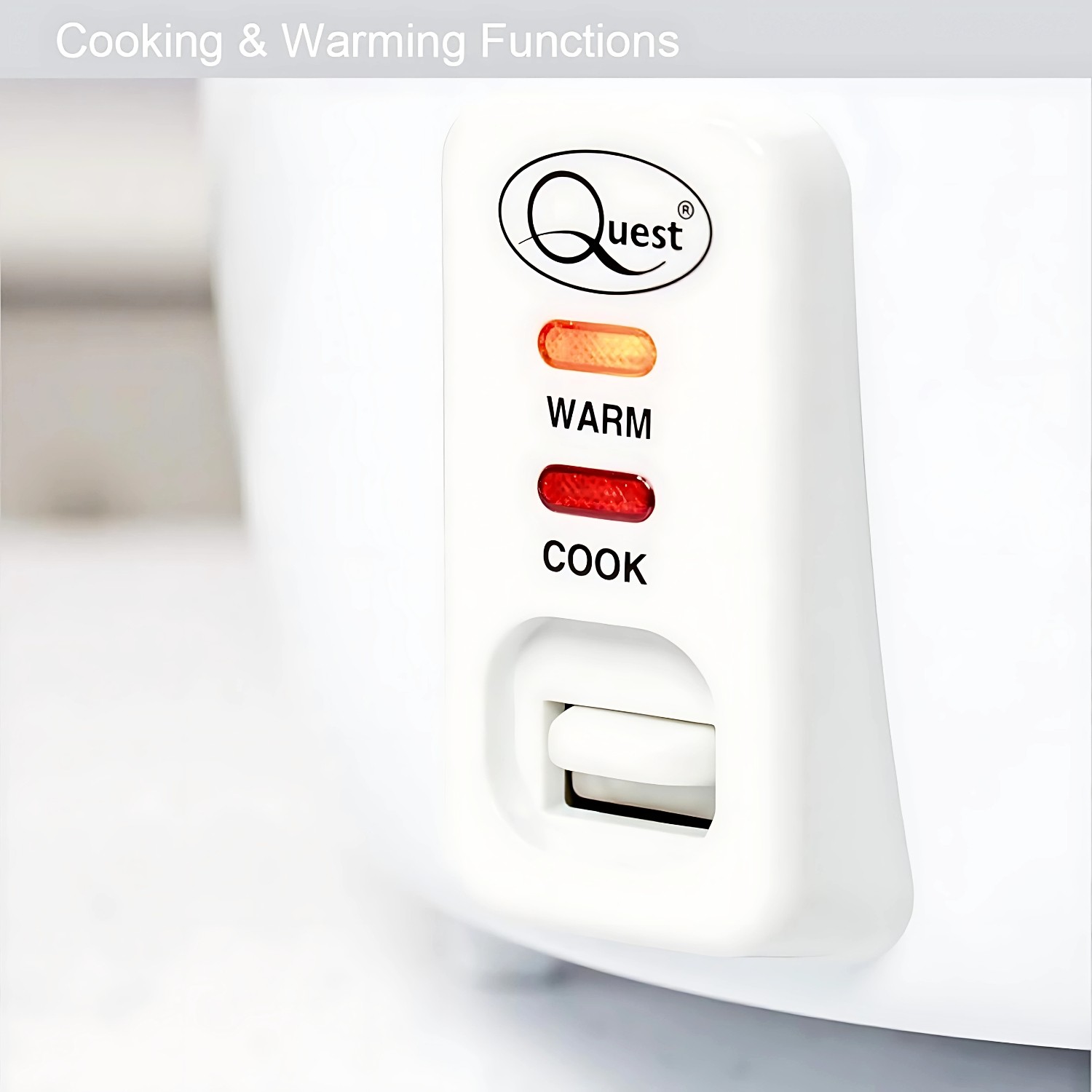Quest 0.8 Litre Rice Cooker/Up To 4 Servings/Food Warmer Function/Non-Stick Inner Pot/Clear Viewing Lid/With Spoon & Measuring Cup / 350W (35530)