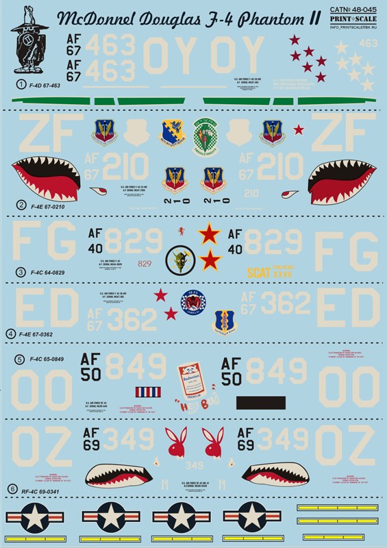 1/48 F-4 Phantom II USAF (Vietnam War) Decal Set Print Scale 48-316