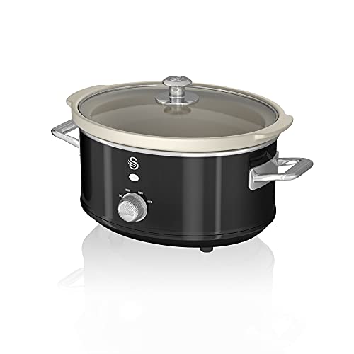 Swan Retro SF17021BN 3.5 Litre Slow Cooker, 3 Temperature Settings, Keep Warm Function, Removable Ceramic Inner Pot, 200W, Black