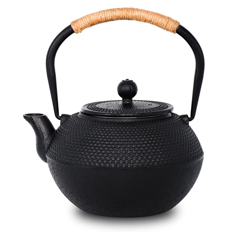 Cast Iron Tea Pot - Twine Handle Teapot Kettle with Infuser and Enameled Interior for Stove Top, 1.2L/40 Oz