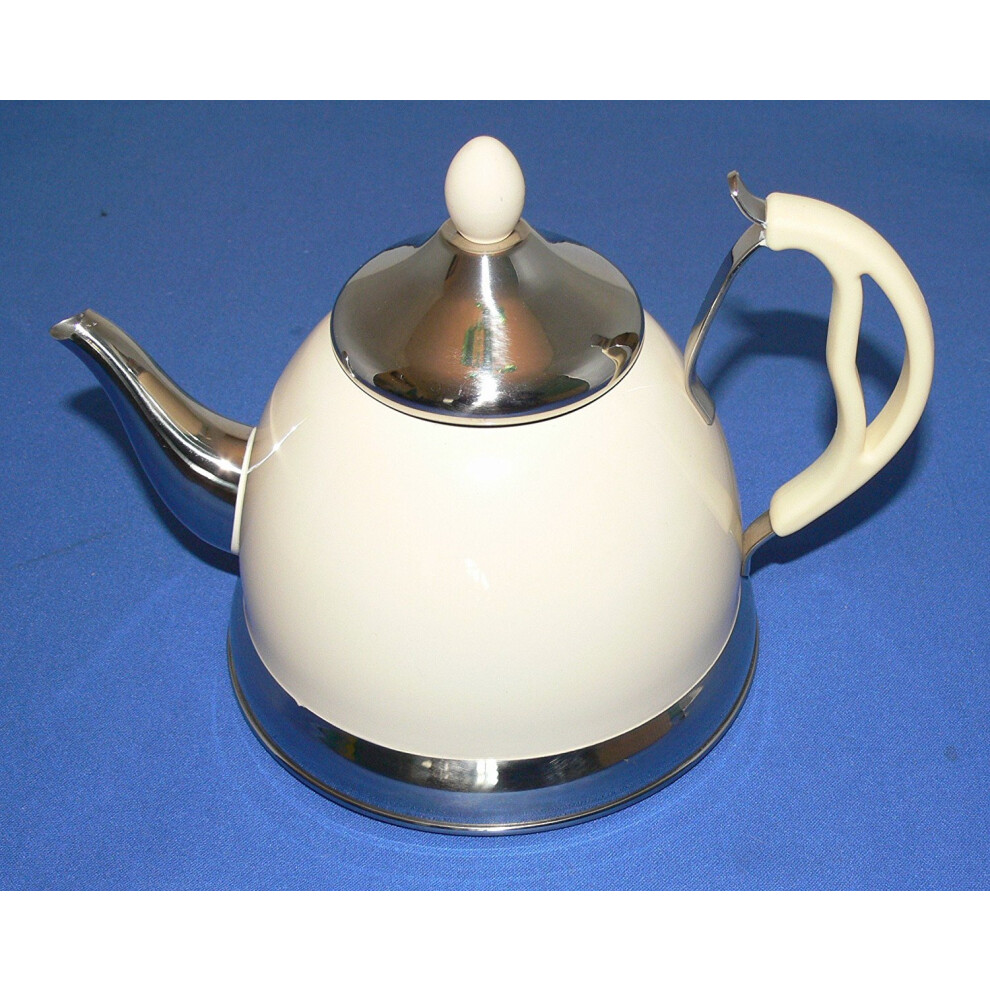 Prima Kitchenware 11170C Retro Stove Top Kettle & Teapot Combined. Off-White & Chrome. Suitable for Ceramic-Induction Hobs, 1.5 liters